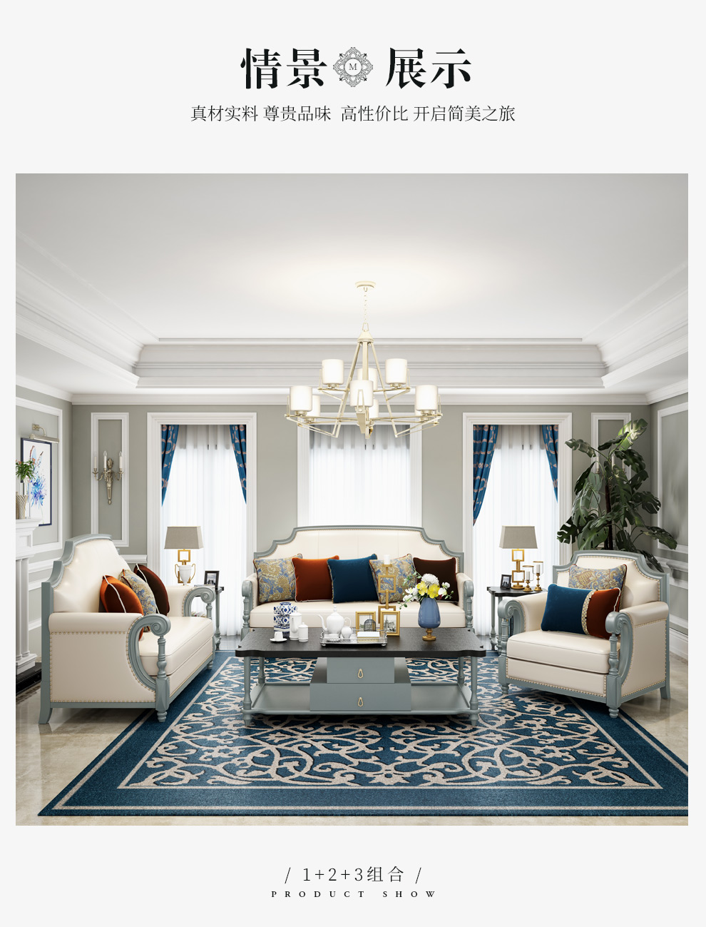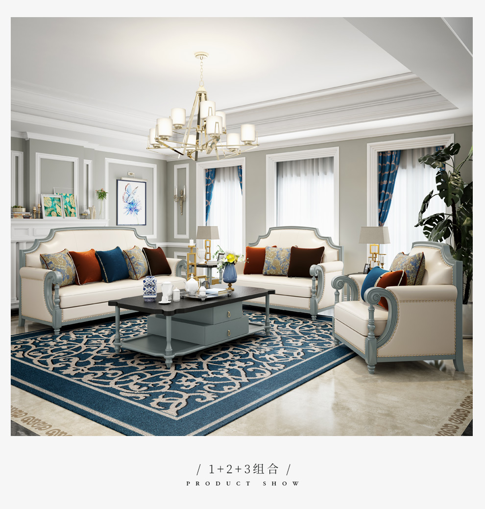 | 商品名称 | ドリームス宣ソファアメリカの実木の真皮の田舎ソファセット欧式客間シンプル123ソファデザイナー高級灰ソファM 660+2+3セット |