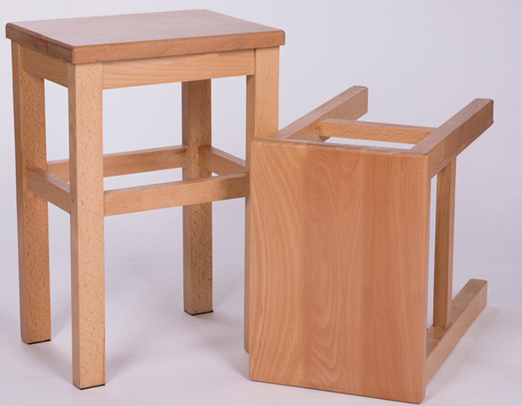 丸太の四角い椅子、全木の板の椅子、家庭用椅子、木製の小さな椅子、木製の椅子、高椅子、ブナの木の大きいサイズの腰掛け、赤色の椅子、高さ43センチ