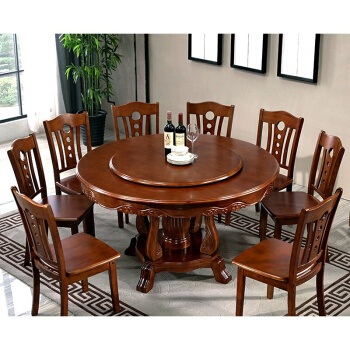 木のテーブルと椅子を組み合わせた中国式の大きな円いテーブルに回転盤付きのオーク付きの10人の家庭用丸み1.8メートルのテーブル。1.2メートルのテーブル+回転盤。