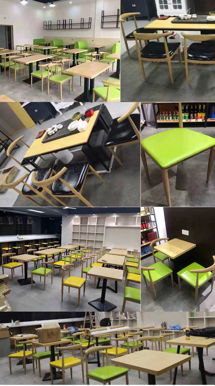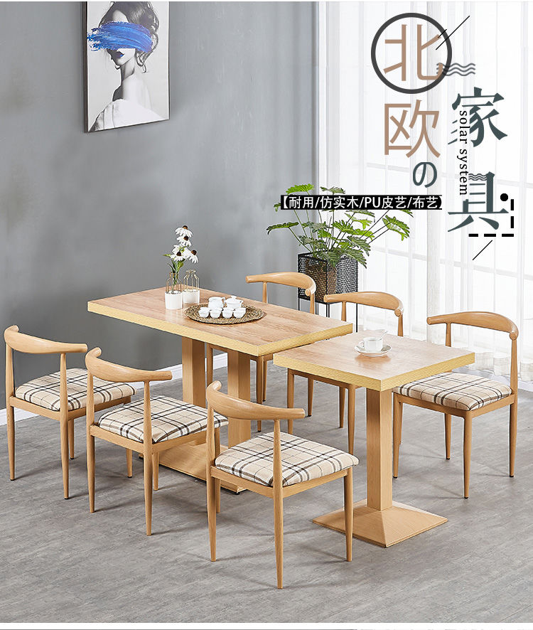 仿実木铁艺牛角切阿斯茨尔咖啡餐厅桌椅餐厅餐厅餐厅餐厅家庭用休闲现代简单靠背椅白橡木白色PU座布団牛角椅子四把(单把价格)