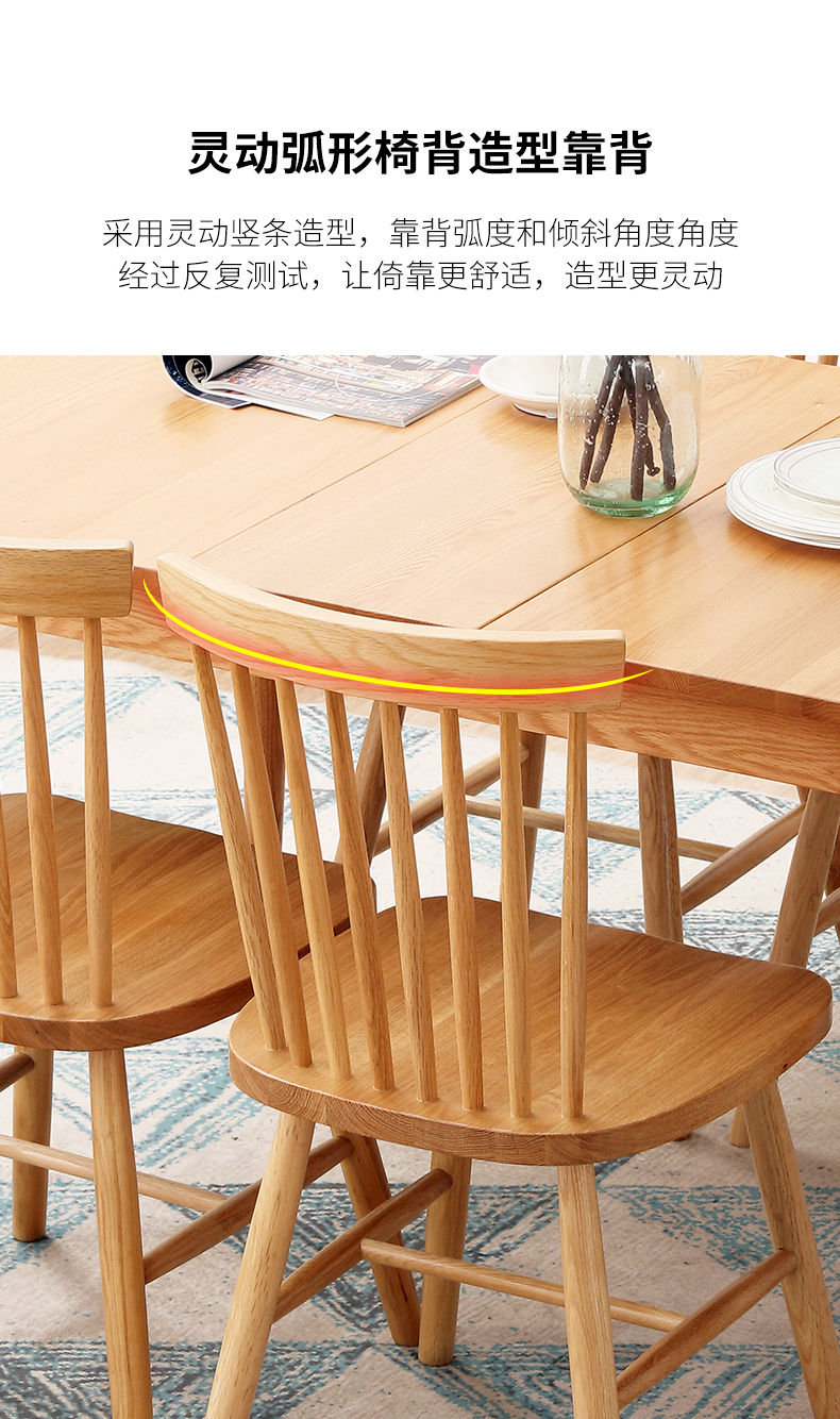 良工家具实木切亚家用橡木现代シンプル北欧温莎椅子餐厅实木餐厅背もたれ椅子原木色