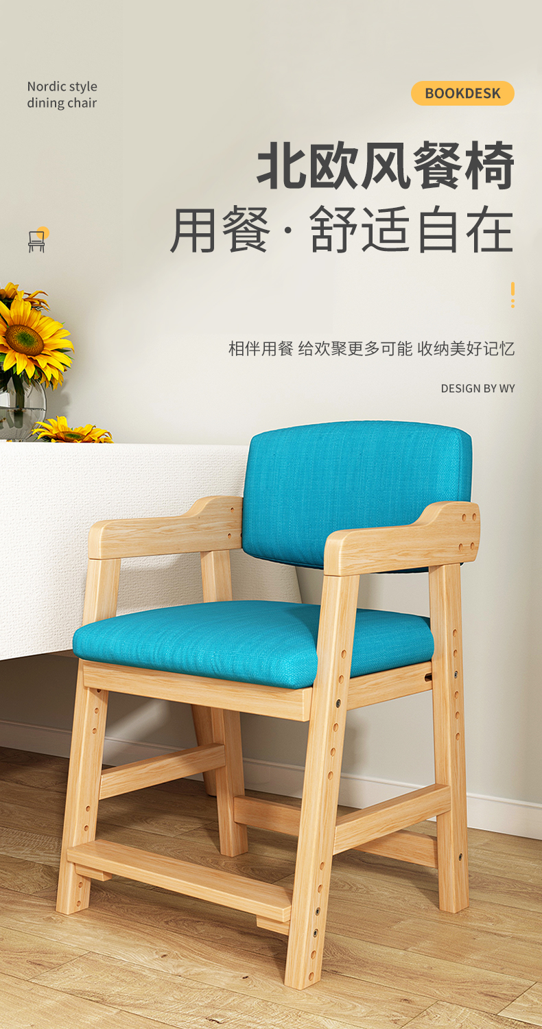 全誉饭椅实木家用可升降宝宝宝饭背座座雪丝茨尔小学生戴斯克学习チェア【食卓学习テーブル両用】田园橡木色60*60*72 CM