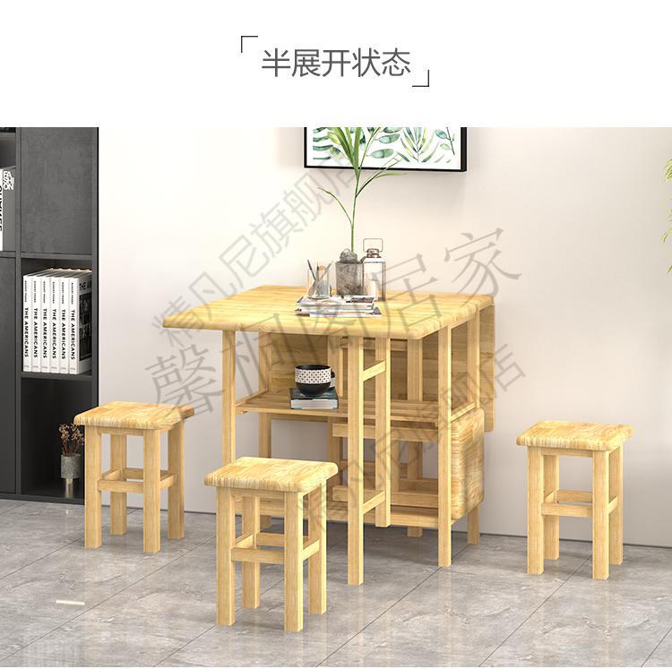 紫橦阁 吃饭テーブル家用小户型折叠餐桌全实木可收纳桌长方形带スツール桌椅套装 橡木一桌四凳【原木色】