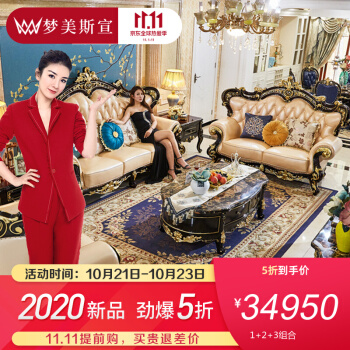 夢美斯宣欧式ソファー欧式本革ソファーセットヘッド層牛革大戸型別荘リビングルーム全実木ソファ798セット1+2+3(白米Aタイプ)
