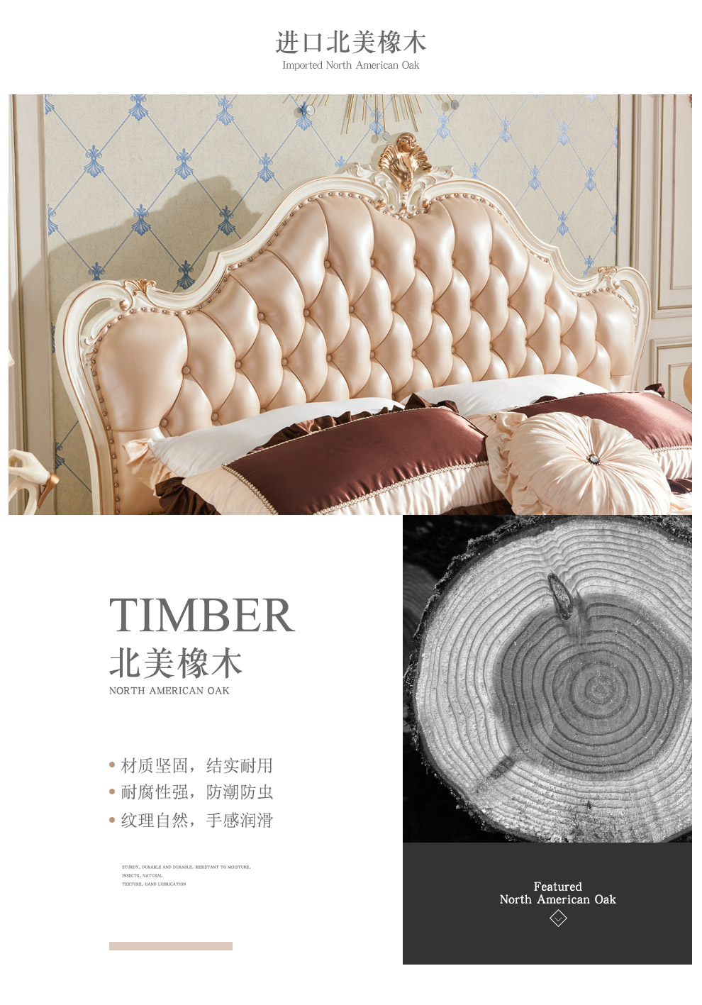 | 商品名称 | ドリームス宣布ベッド全木真皮ダブルベッド輸入オークベッド洋式寝室家具亮光真珠白木彫刻大床8833 |
