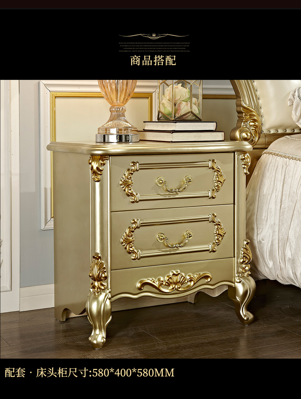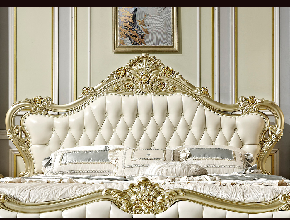 夢の美斯宣の欧式ベッドの実木の真皮の大きいベッドの法式の彫刻シャンパン金の寝室の家具の結婚ベッドの中で大きな部屋型の豪華な1.8メートルの大きいベッドA 08 1.5 m 1ベッドの2つの箱【写真の価格のブランドのオファー】-京東