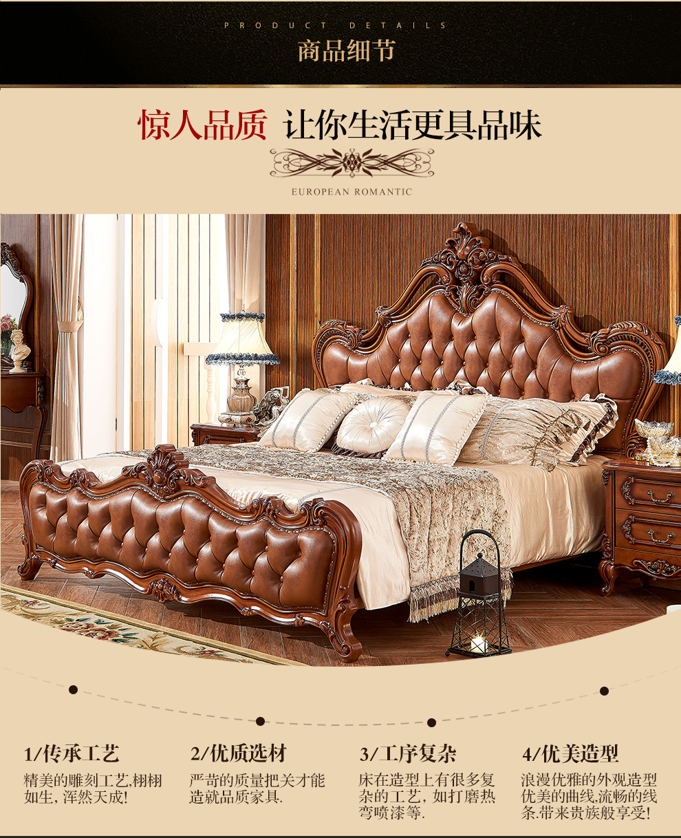 | 商品名称 | ドリームス宣アメリカの実木真皮ダブルベッド。ヨーロッパ式のクラシックで豪華な大型ベッドルーム家具。 |
