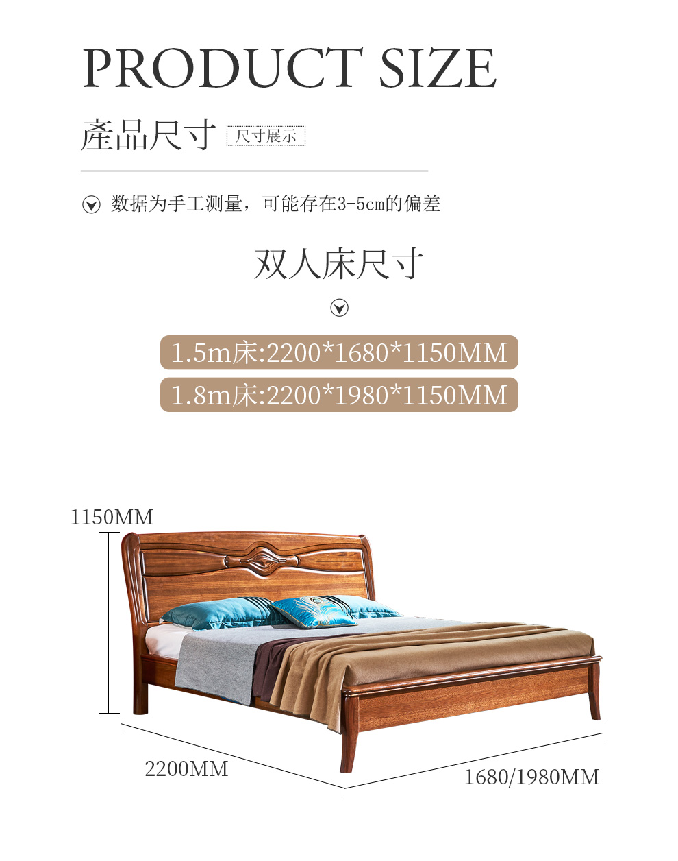 | 商品名称 | 【5折】夢美斯宣床烏金木全実木床简略美寝室逸品家具1.8メートルダブルベッド簡単彫刻実木ベッド806一床二箱(高箱タイプ)1500*2000 |