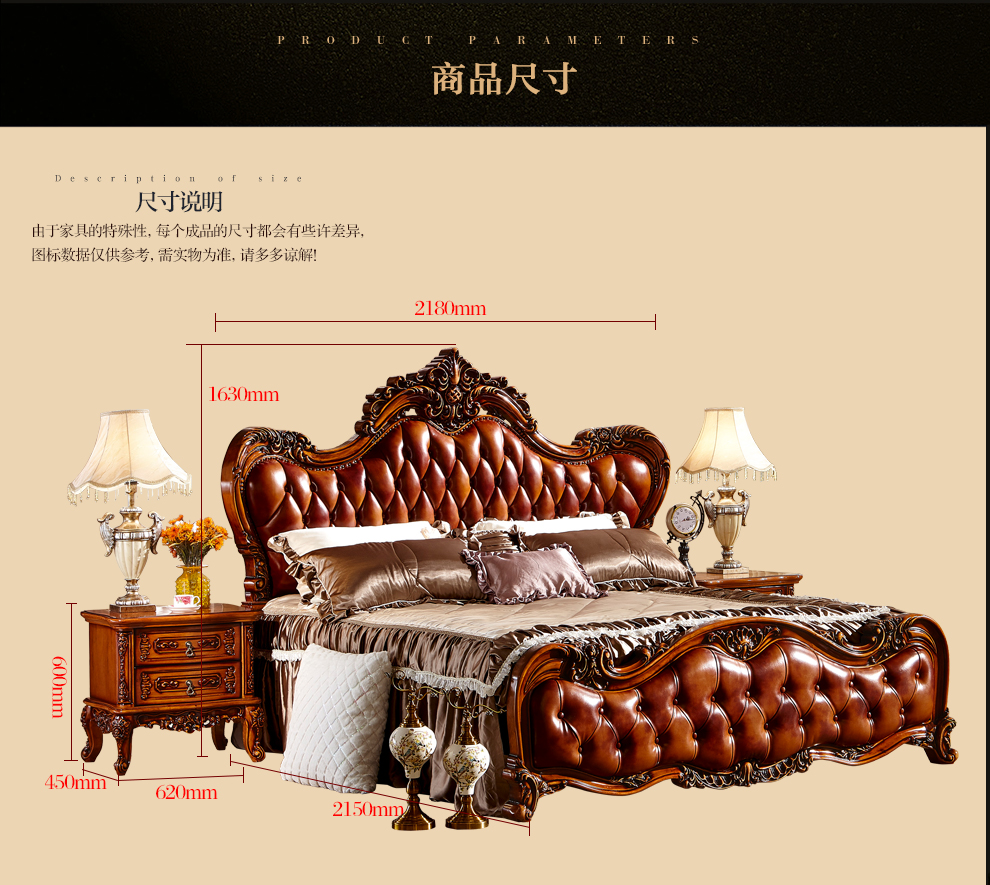 | 商品名 | ドリームス宣布家具アメリカ式クラシックベッド欧式ベッド全実木ダブル真皮ベッド結婚ベッド1.8メートルオークベッド9903ベッド二台(高箱タイプ)1800*2000 |