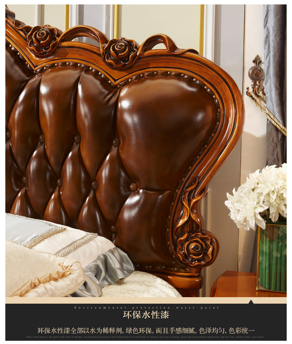 夢の美斯宣アメリカ式の古典の実木の2人の大きいベッドの寝室のヨーロッパ式の真皮の柔らかい包みの彫刻姫のベッドの大きい家型の結婚ベッドA 16(暗い色の金)の1つのベッドの2つの箱(高い箱の金)+【腰を保護する竹のマットレス】