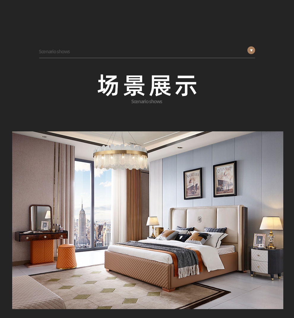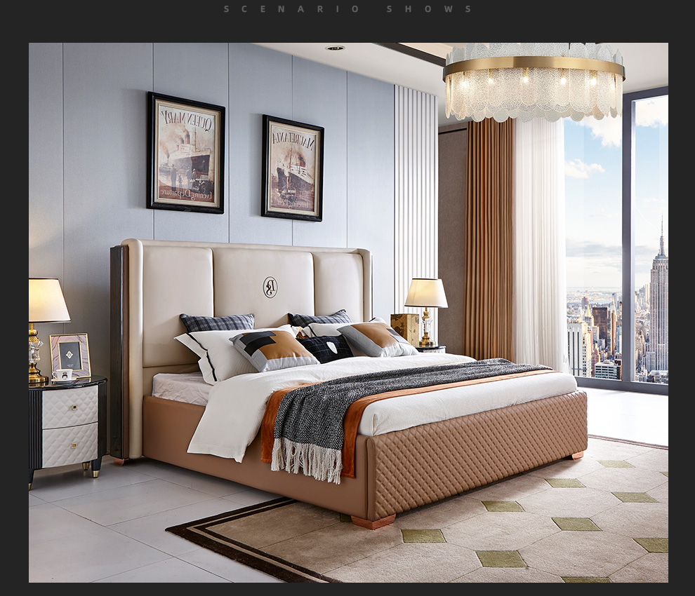 夢の美斯宣のベッドルームの家具は近代的なアメリカ式の軽奢なベッドの1.8メートルの2人のベッドのinsベッドの主人は簡単なイタリアの真皮のベッドの結婚するベッドDSQ-Q 006 1.8メートルの1つのベッドの2つの箱+650 Aマットレス