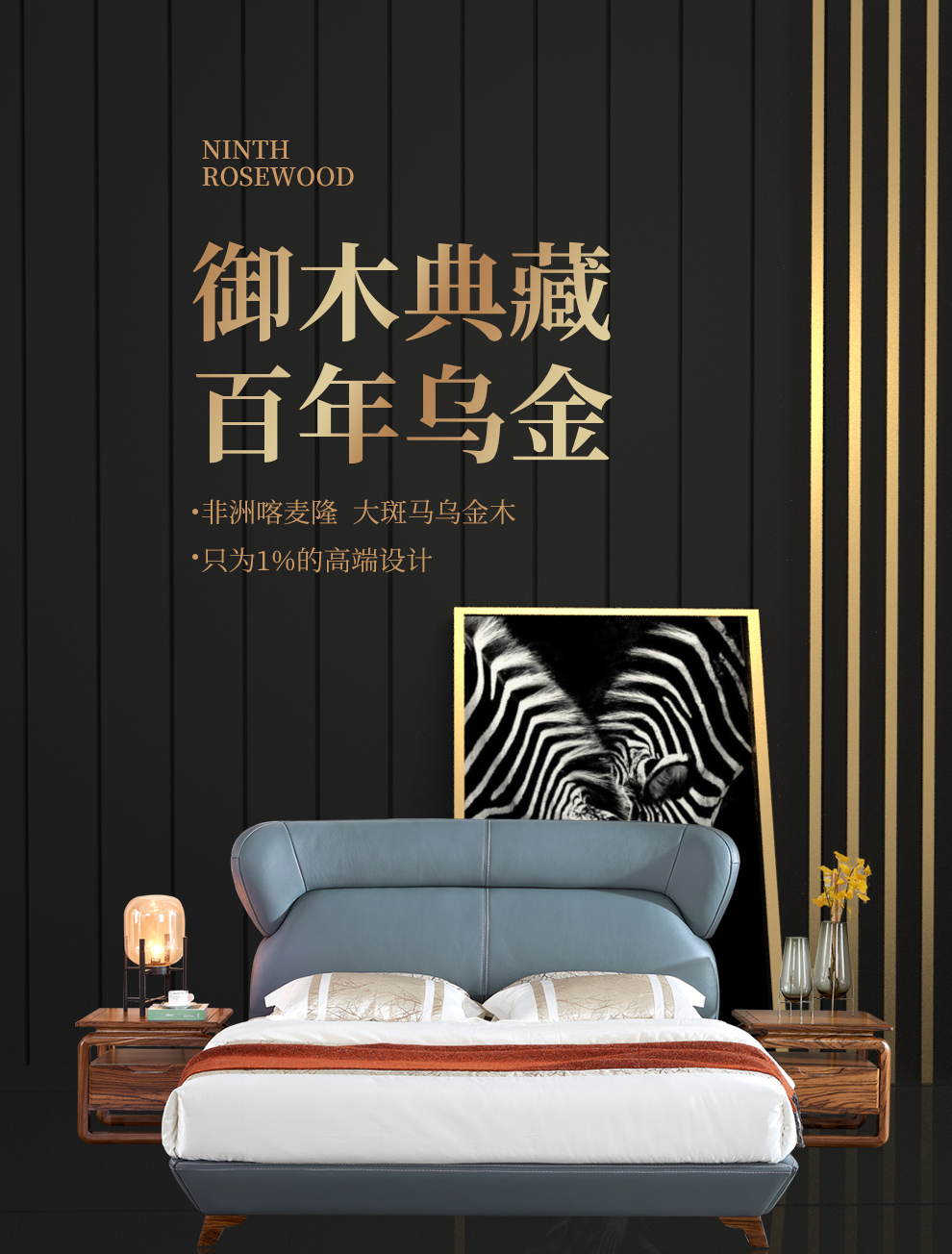 夢の美斯宣の寝床の真皮の実の木のベッドの大きいシマウマの烏金の木は簡単に中国式のダブルベッドの近代的なファッション的な大きい家型の寝室の1.8メートルのベッドDSQ-908【大きいシマウマの烏金の木】1.8メートルのベッド