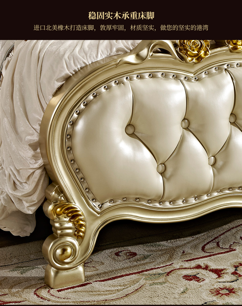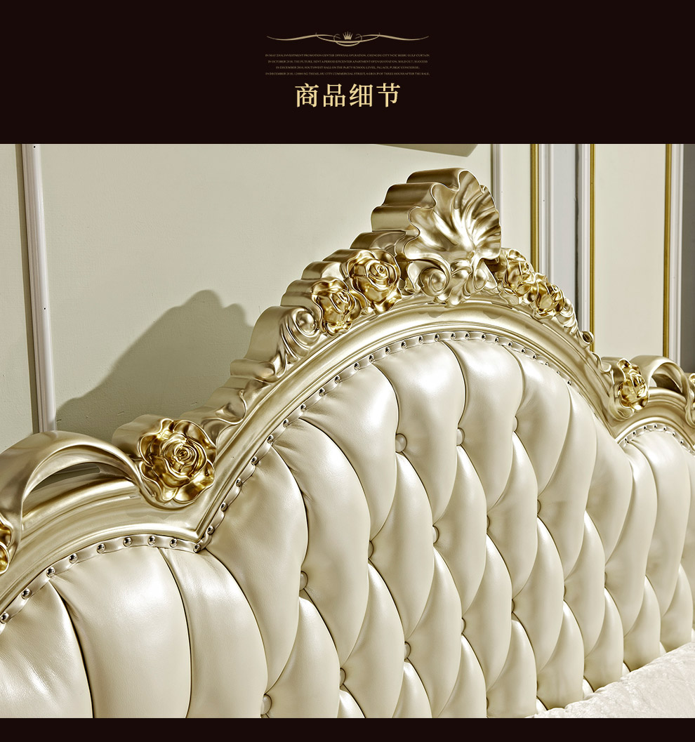 | 商品名称 | ドリームス宣欧式ベッド実木真皮大床フランス彫刻シャンパン金寝室家具結婚ベッドの中の大きな部屋型豪華1.8メートルの大型ベッドA 16ベッドの2つのキャビネット |