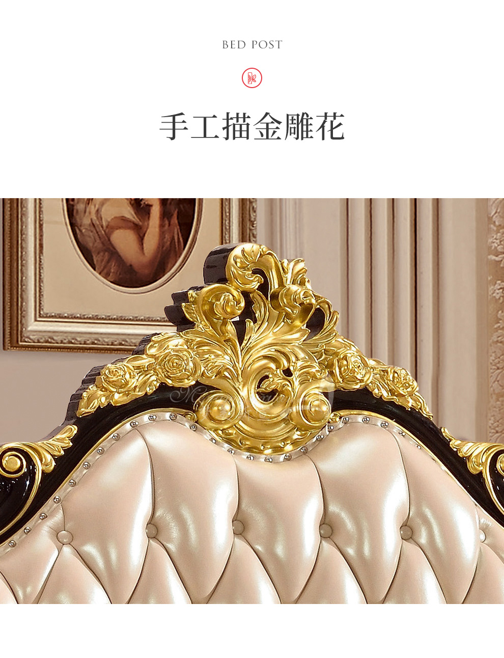 夢の美斯宣のベッドの真皮の大きいベッドのヨーロッパ式の古典の彫刻の2人のベッドのアメリカ式の寝室は金の彫刻を描きます1.8ベッドの大きい家型の家具の102 1つのベッドの2つの箱+ベッドの尾の腰掛け1800*2000