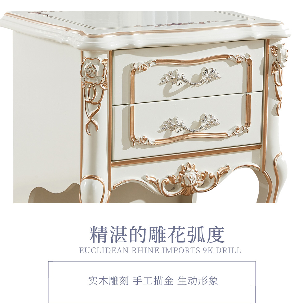 夢の美斯宣の枕元の欧式の真珠の白い描金の彫刻の花の保管物のベッドサイドの戸棚の法式の寝室の家具の寝床の戸棚の5512のベッドの頭の戸棚X 2【ピクチャーの価格のブランドのオファー】-京東