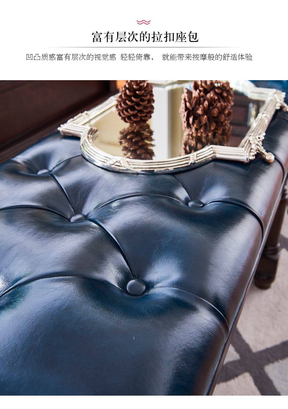 ドリームス宣布床尾腰掛け全実木フレームアメリカ真皮ベッド尾腰掛け欧式寝室靴腰掛け601床尾腰掛け