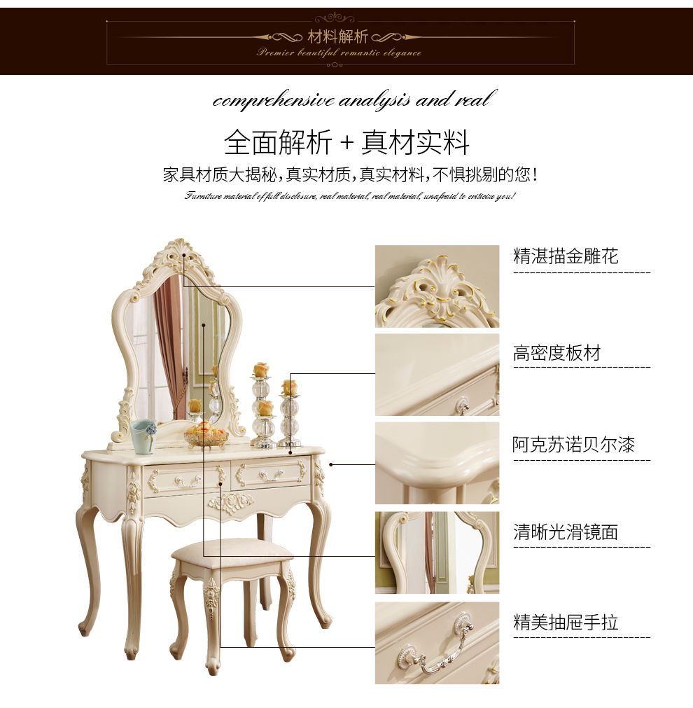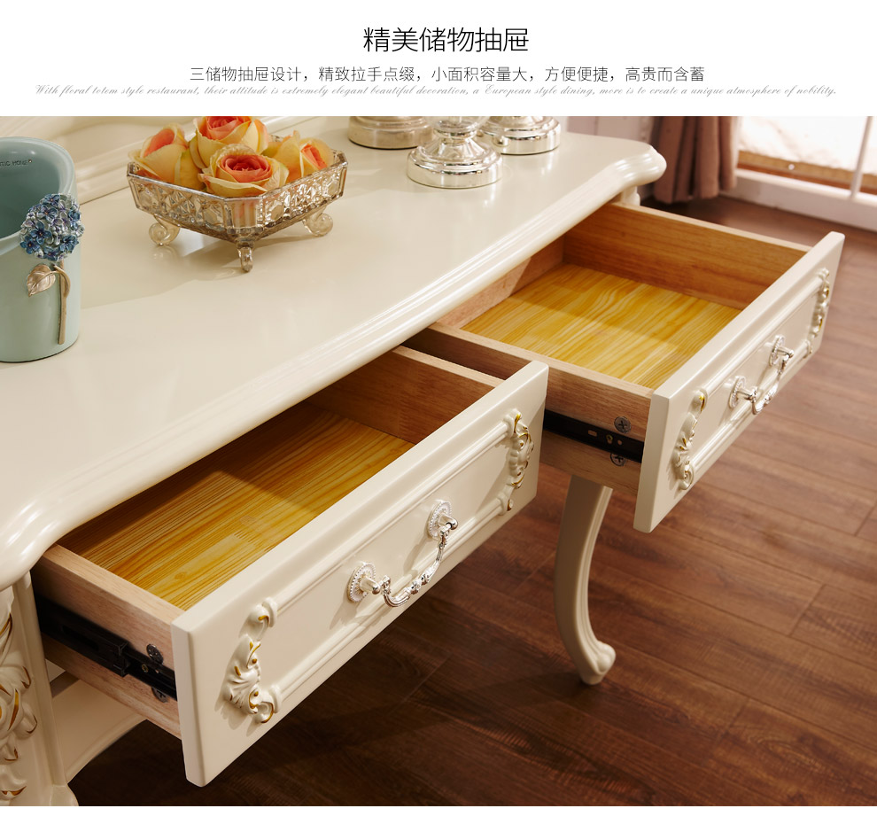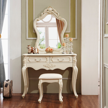 夢の美斯宣夢の美斯宣の欧式の象牙の白い描金の固体の木の化粧台の腰掛けの中で小戸の寝室のアメリカ式の彫刻は物を保管することができます化粧台A 01化粧台+化粧道具の腰掛けの1.0 m【写真の価格のブランドのオファー】-京東