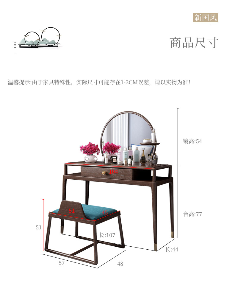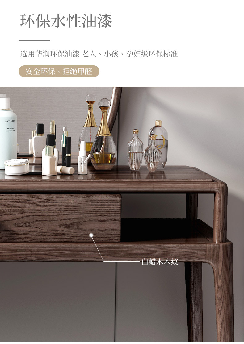 夢の美斯宣の化粧台の新しい中国式の固体の木の化粧台の主な寝室の北欧の物の化粧箱の軽い豪華な胡桃の色の白い蝋の木の銅の家具の918【新しい中国式・白蝋の木】の化粧台【写真の価格のブランドのオファー】-京東