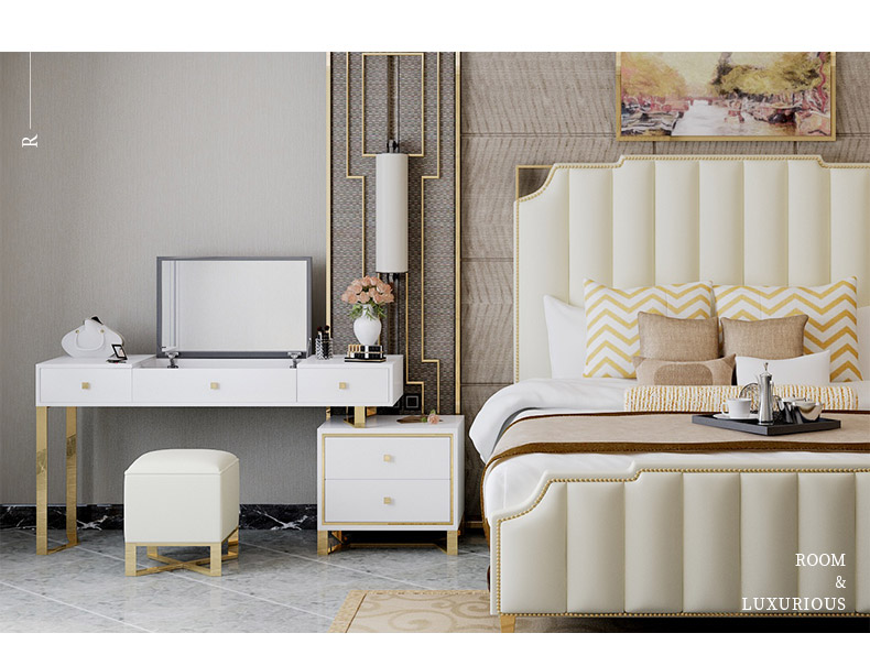 夢の美斯宣の化粧台の後で近代的な化粧台の寝室の金属のステンレスの簡単な約束の港の様式の板の部屋の軽奢な櫛の化粧台C 02ステンレスはチタンの金+白をめっきします/暗い明かりのピアノは漆をあぶります【化粧台】【写真の価格のブランドのオファー】-京東