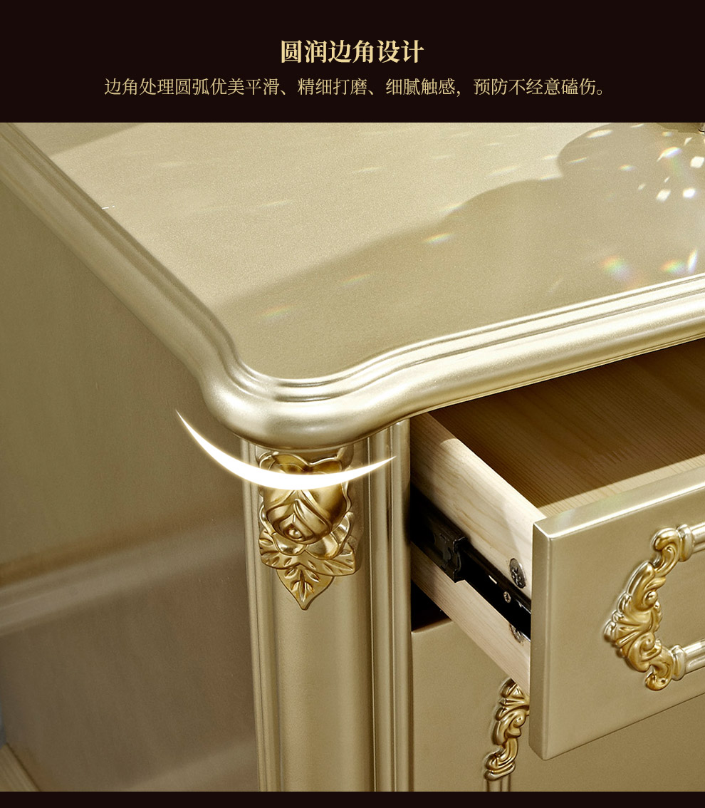 夢の美斯宣の化粧台の洋式の豪華なシャンパンの金の化粧台の軽い豪華な彫刻の化粧台は物の寝室の家具A 16化粧台+化粧台を貯蓄することができます。