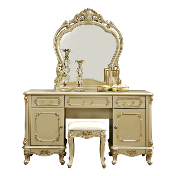 夢の美斯宣の化粧台の洋式の豪華なシャンパンの金の化粧台の軽い豪華な彫刻の化粧台は物の寝室の家具A 16化粧台+化粧の腰掛けを保管することができます。