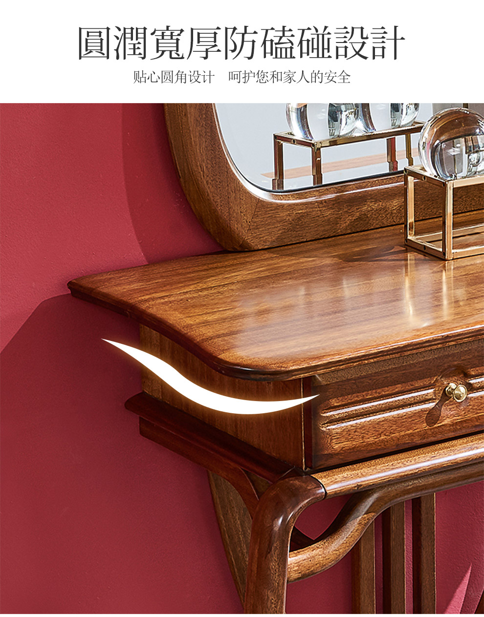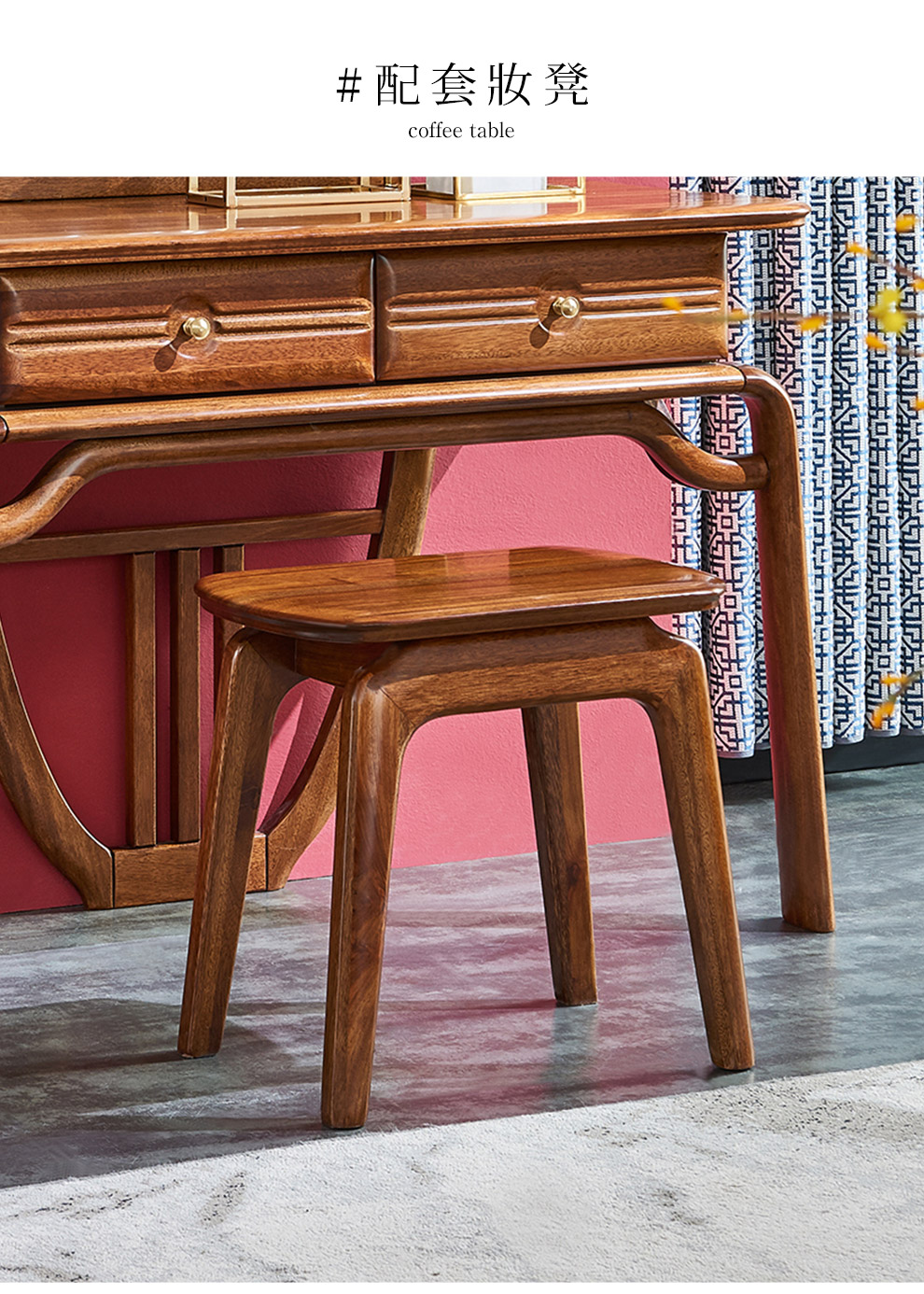 【5つ折り】夢美斯宣ドレッサー台烏金木全実木化粧台简美実木寝室家具化粧台801ドレッサー+ベンチ