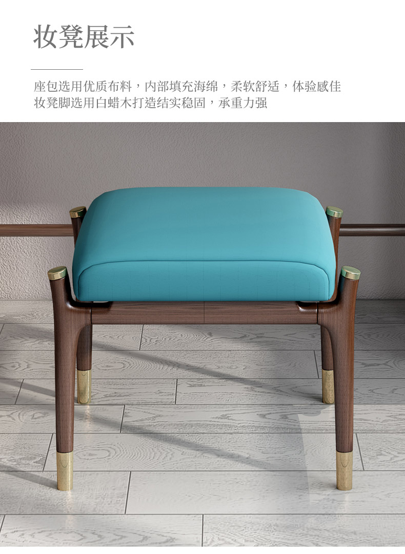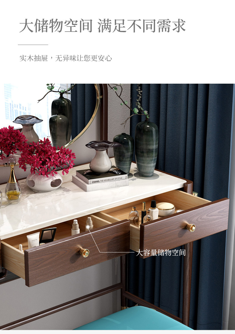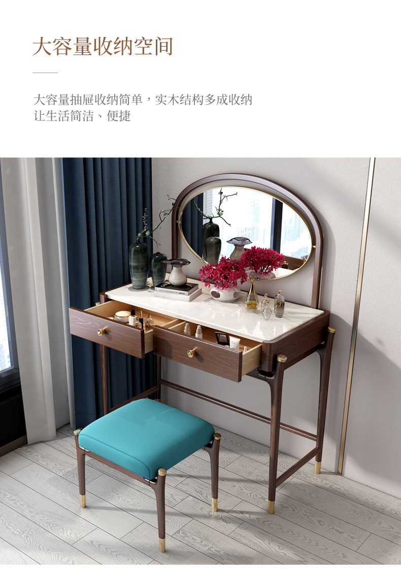 夢の美斯宣の化粧台の新しい中国式の化粧台の白い蝋の木の貯蔵物は化粧台の胡桃の色の全本当の木の軽い贅沢な銅の木の家具の916を収めます。