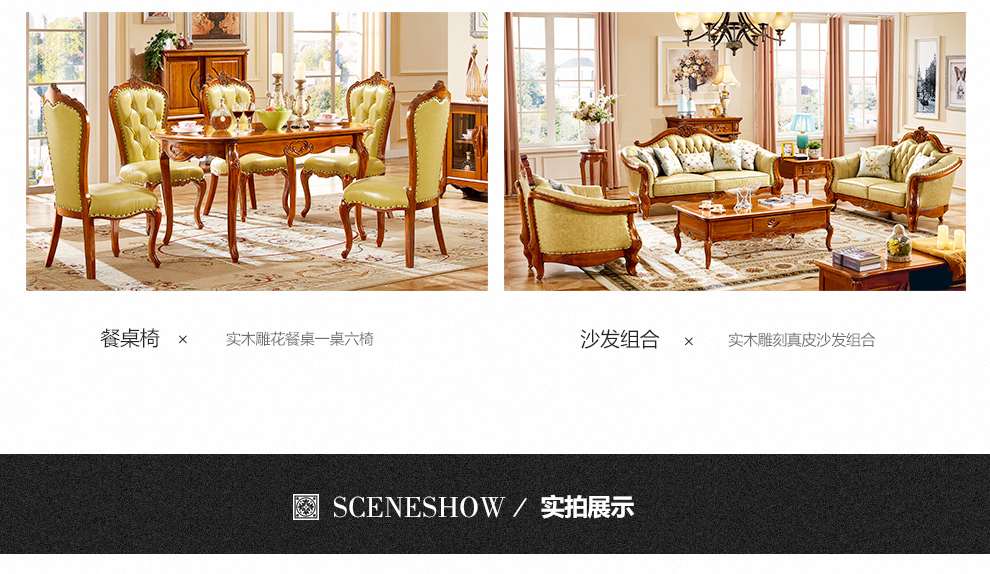 夢美斯宣欧式ソファ実木ソファ頭層真皮ソファアメリカ式新古典ソファ123セット客間逸品家具966全実木両面彫刻真皮ソファ123セット