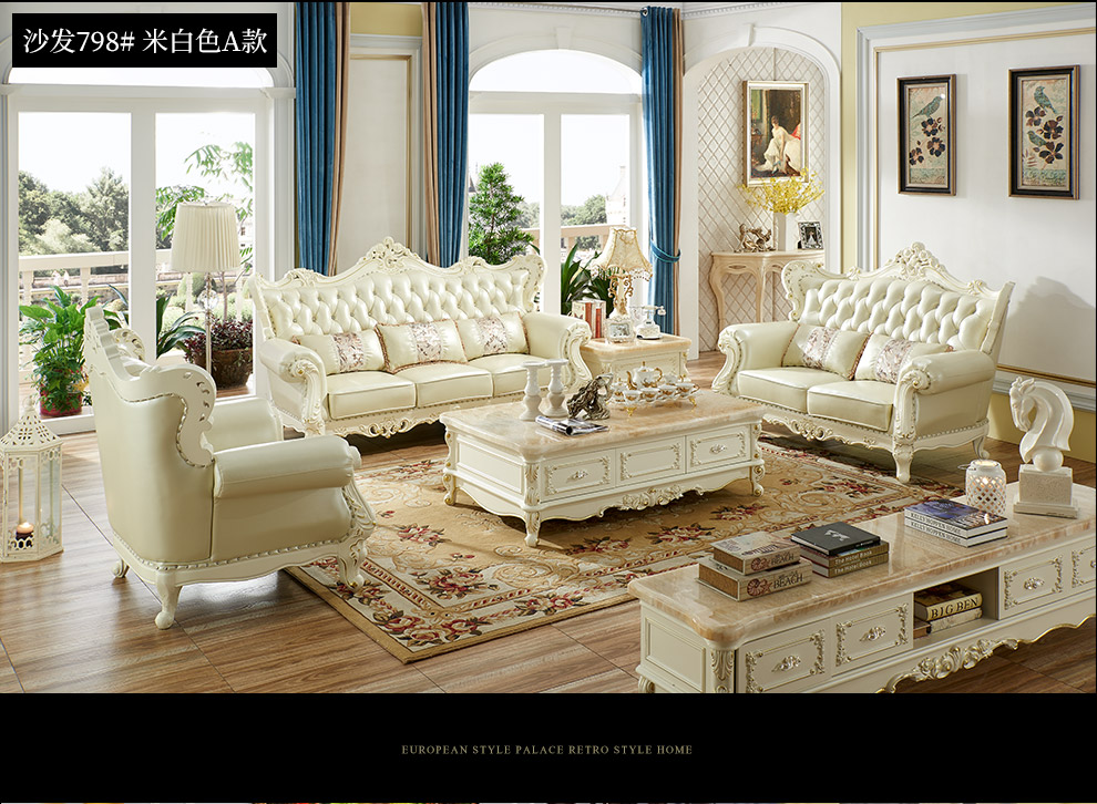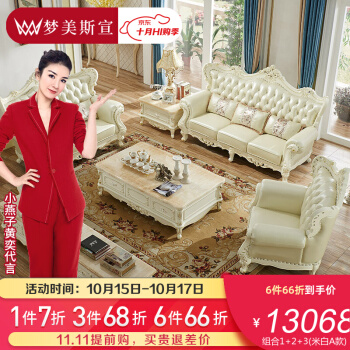 夢美斯宣欧式ソファー欧式本革ソファーセットヘッド層牛革大戸型別荘リビングルーム全実木ソファ798セット1+2+3(白米Aタイプ)【写真価格ブランド見積】-京東