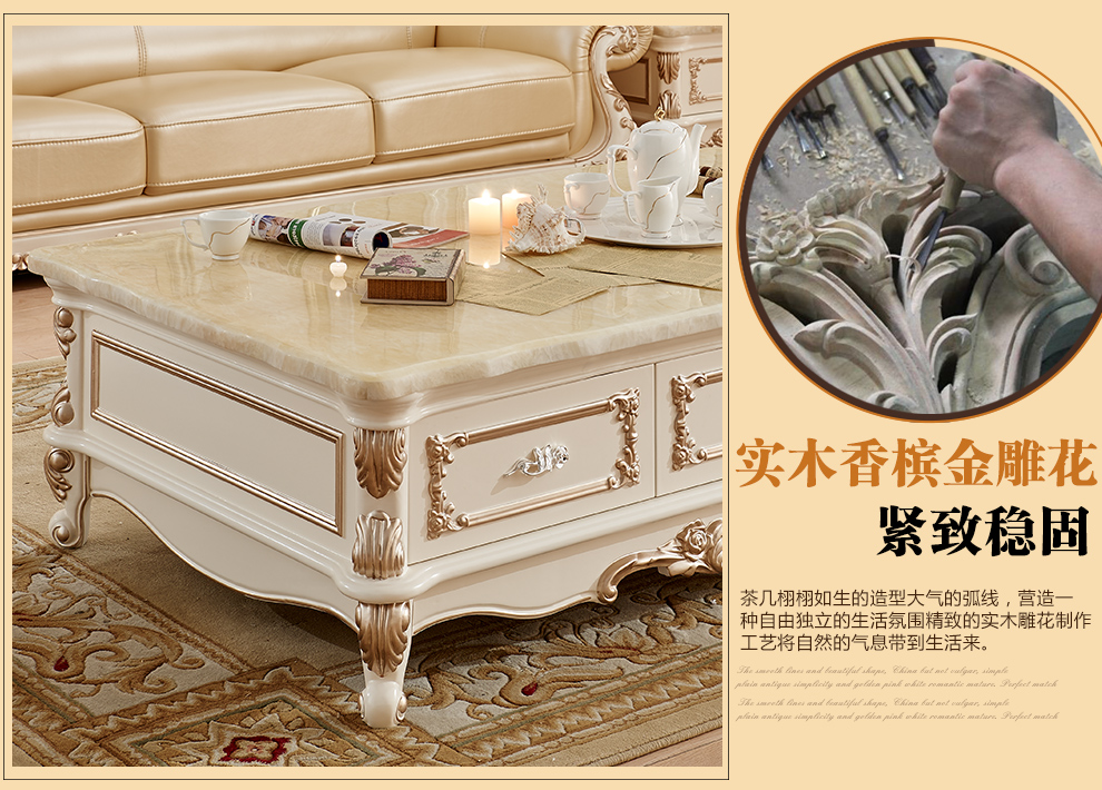 夢美斯宣欧式ソファー欧式本革ソファーセットヘッド層牛革大戸型別荘リビングルーム全実木ソファ798セット1+2+3(白米Aタイプ)