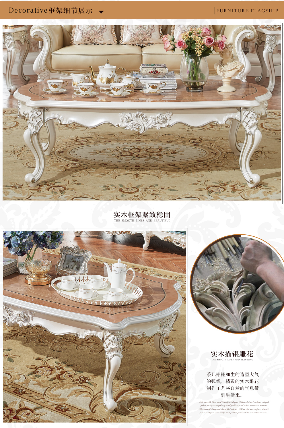 夢美斯宣欧式ソファー欧式本革ソファーセットヘッド層牛革大戸型別荘リビングルーム全実木ソファ798セット1+2+3(白米Aタイプ)