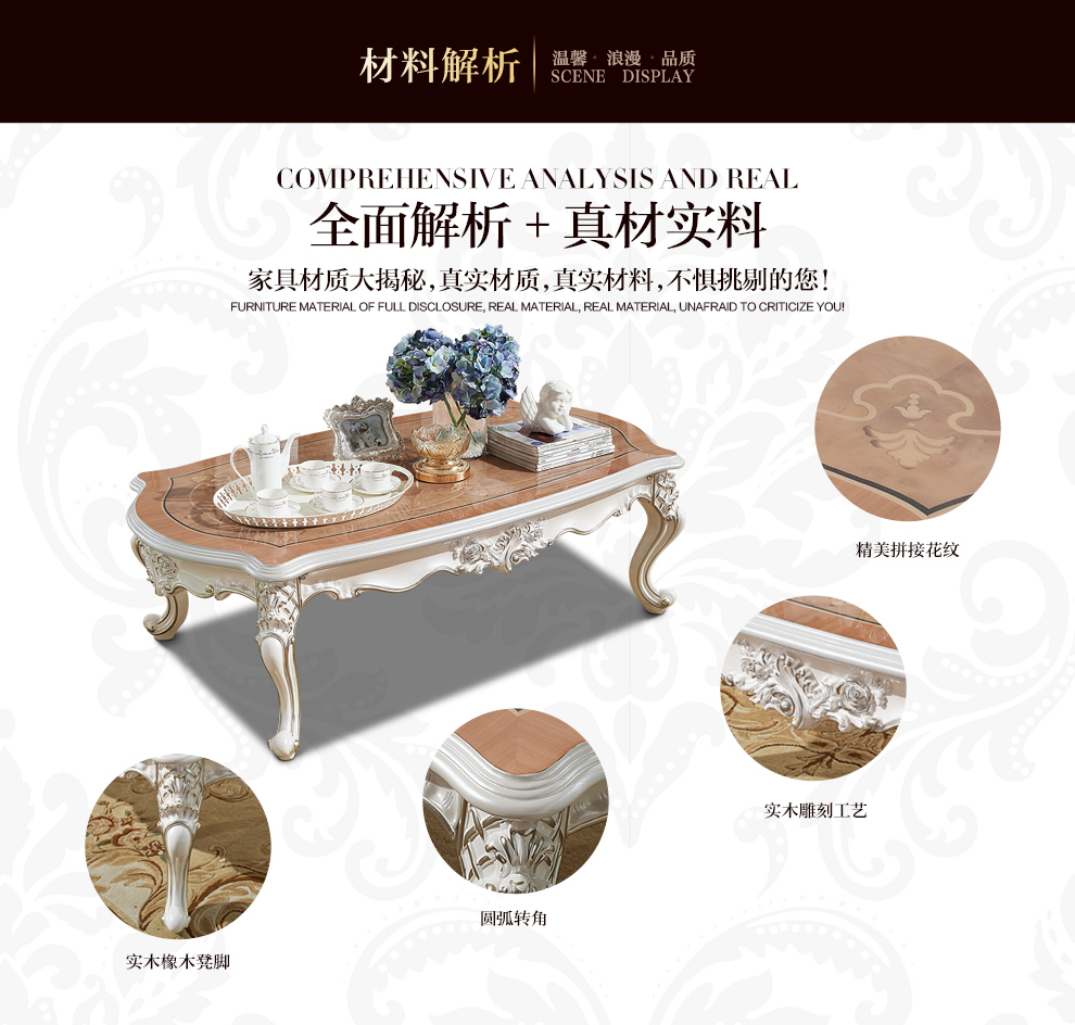 夢の美斯宣長方形の茶何は木の彫刻の茶の何角のアーチ形を輸入して客間のクヌギの家具の204 1.6メートルを防ぎます。
