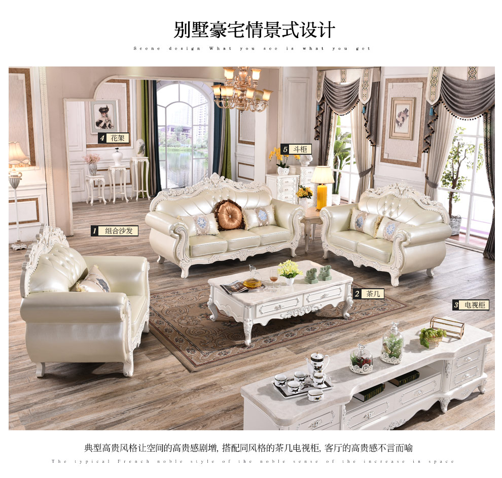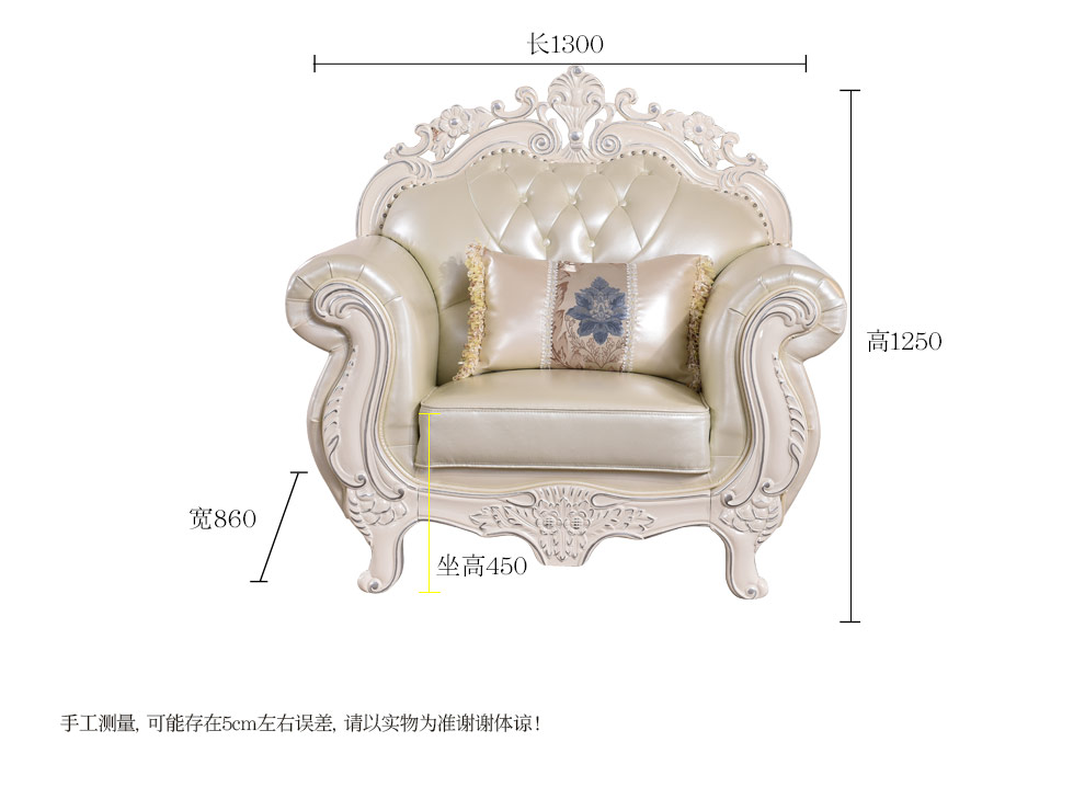 | 商品名称 | ドリームス宣布家具客間ヨーロッパ式本革ソファーセット欧式実木彫刻花本革ソファ牛皮ソファ210 m黄描銀皮モデル三人位 |