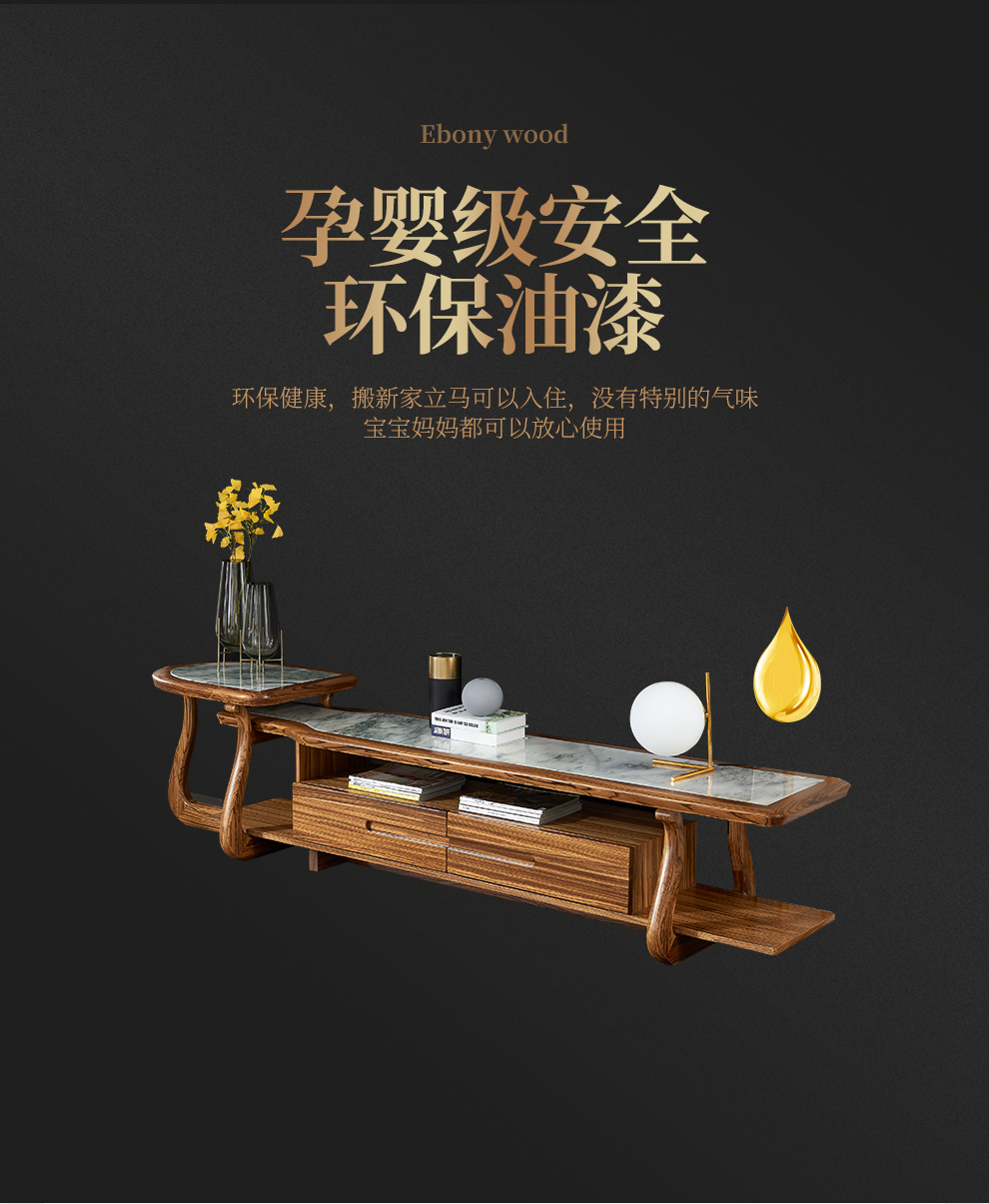 【5割引】ドリームス宣テレビキャビネットの実木烏金木地のキャビネット現代シンプルな大理石テレビキャビネットの中の大型現代中国風喫茶店HFY-03【大シマウマ烏金木】テレビキャビネット(山水画天然石)