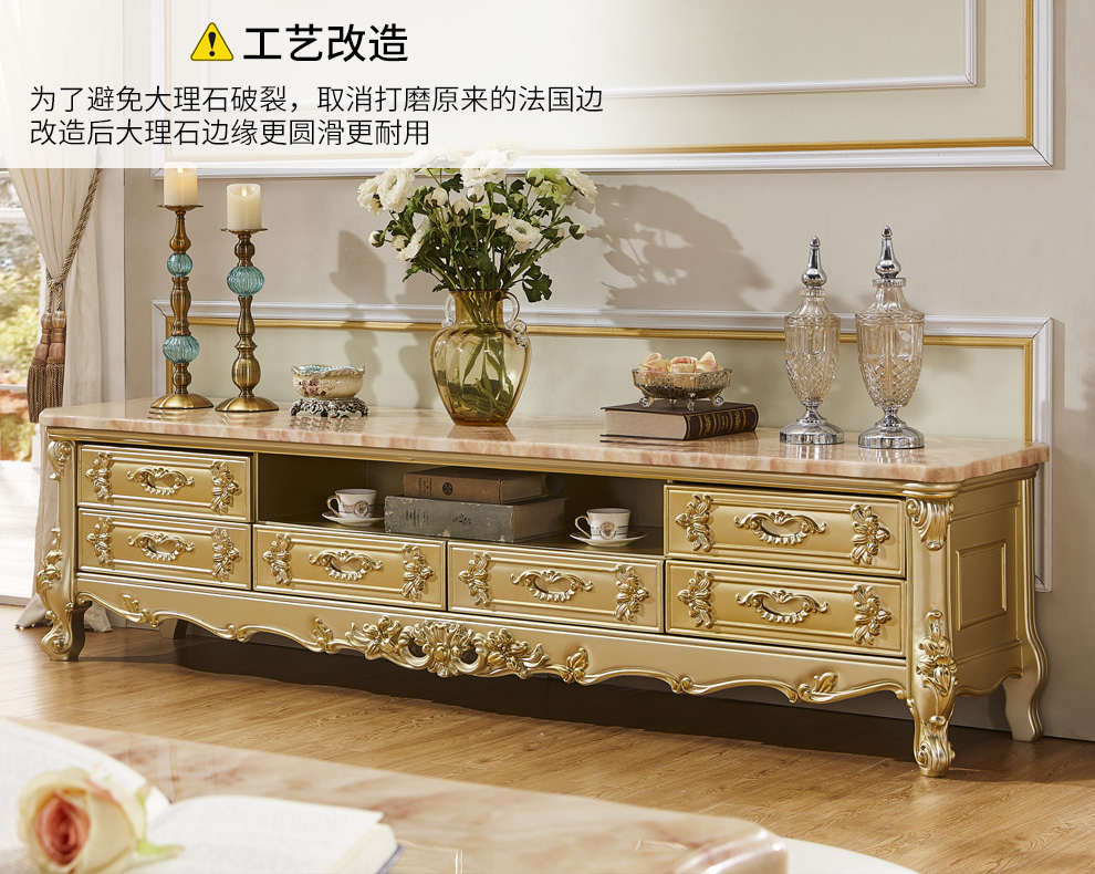 梦美斯宣电视台欧式实木大理石雕花电视台客間家具の中の大きな戸形の戸棚は物を保管することができます。