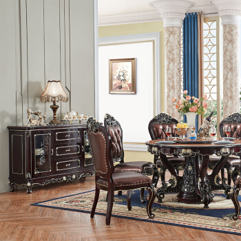 梦美斯宣餐サイドキャビネット全实木餐厅キャビネット欧式古典白檀色キャビネット手作り描金彫刻666-A 1.6 mサイドキャビネット