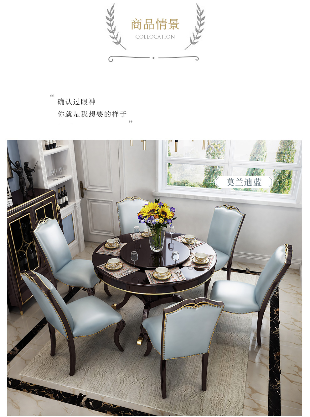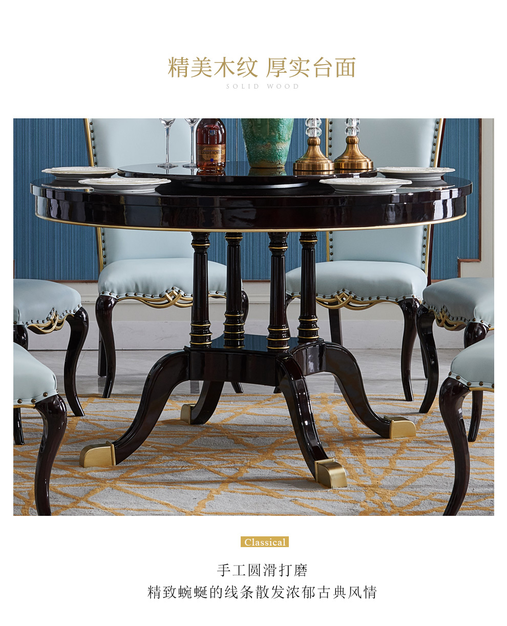 夢美斯宣布テーブル実木テーブル軽豪アメリカ式テーブルセット簡単レストラン丸太テーブル皮芸椅子セット092アメリカ式軽くて豪華なテーブル1.35 M【単一テーブル+回転台】