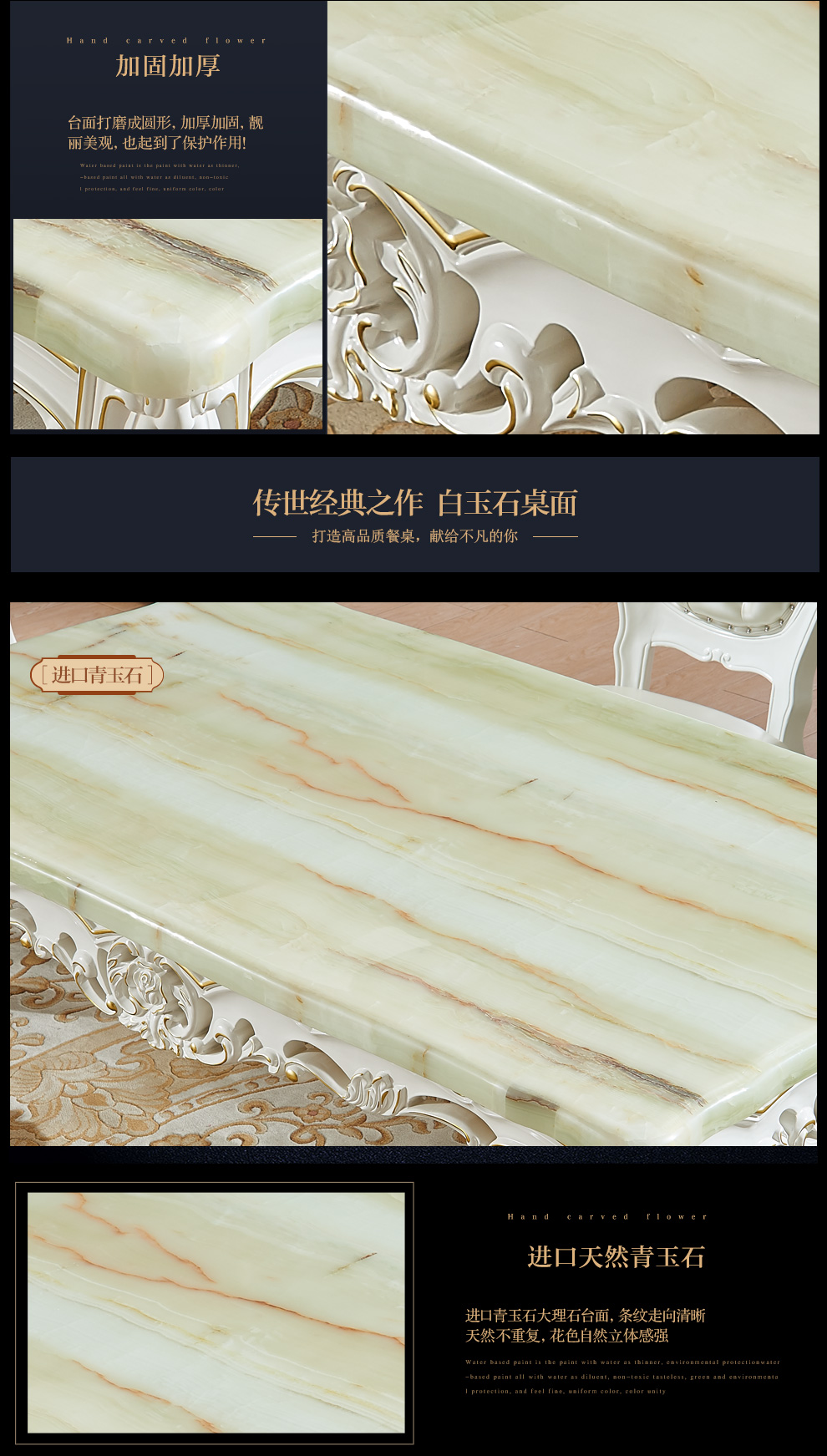 | 商品名称 | 夢美斯宣欧式テーブルと大理石テーブルの組み合わせ輸入白玉石テーブルフレンチルーム長方形テーブル711輸入白玉石テーブル六椅子(手すりなし)1.3 m/1.5 m |