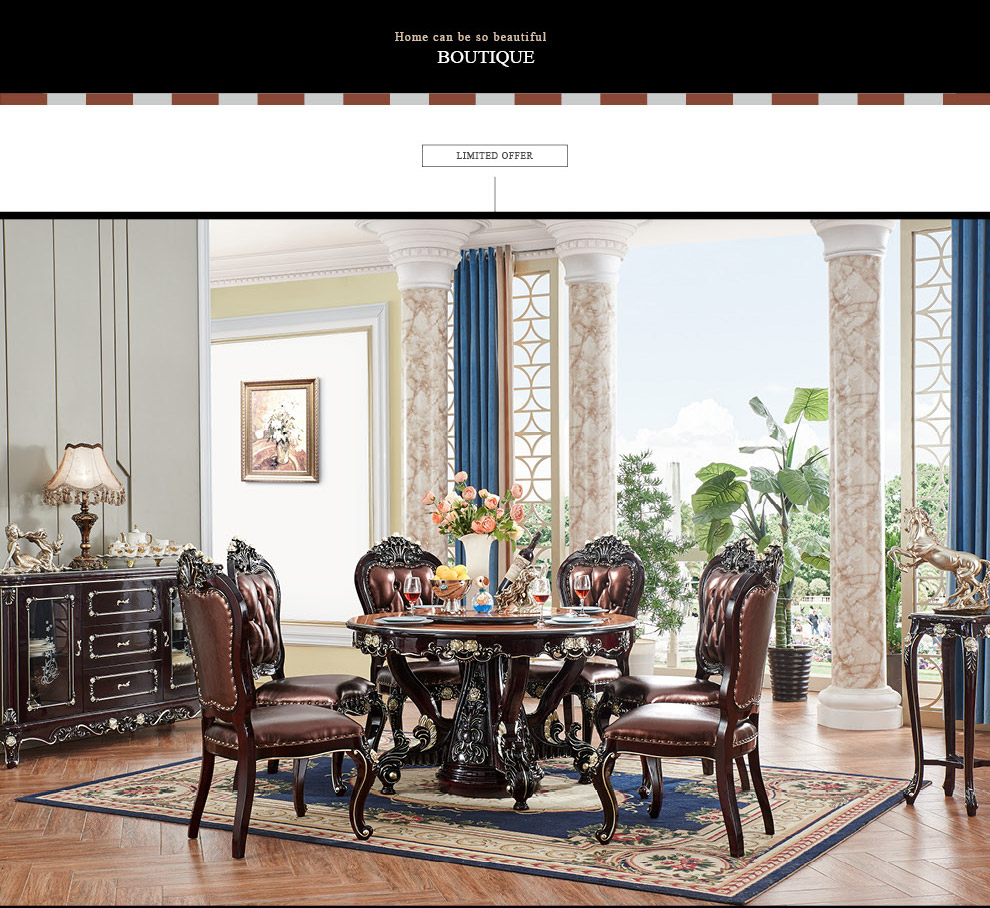 | 商品名称 | ドリームス宣布テーブルヨーロッパ式の大きな部屋の形は全部木の円いテーブルです。古典的な木のご飯テーブルに手作りの彫刻と金食のテーブルと椅子の組み合わせは999-A 1.5 mです。 |