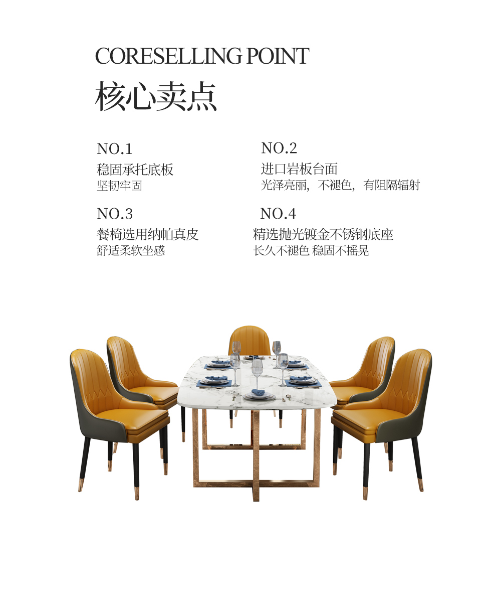 | 商品名称 | 夢の美斯宣の食卓現代の軽い贅沢な食卓の椅子の組み合わせの小さい家型の家庭用レストランの大理石の食卓の椅子の組合せの106 130*75テーブル |