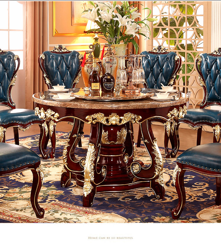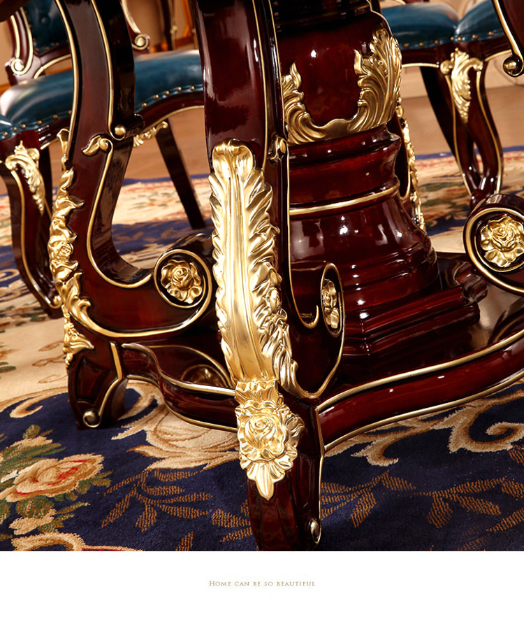 | 商品名称 | ドリームス宣布テーブルヨーロッパ式の大型戸形の全実木丸テーブルの赤い壇の古典的な木のご飯テーブル手作りの彫刻と金食のテーブルと椅子の組み合わせ666 1.3 mのテーブル |