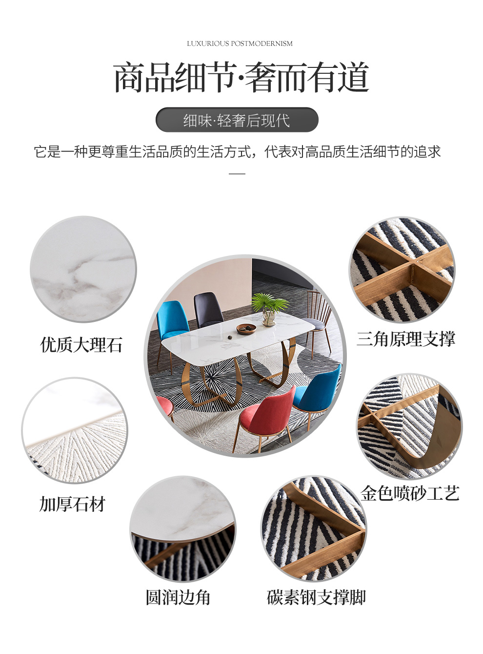 夢美斯宣布食卓軽奢大理石台テーブルセットins長方形ステンレス鋼を組み合わせた後、現代北欧食卓を簡単に予約しました。
