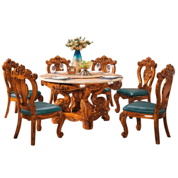 梦美斯宣布テーブル别荘烏金木天然大理石アメリカ円形欧風テーブルと椅子1.5 m 6人烏金家具HK 35【烏金木+天然大理石】1.5 mテーブル【写真価格ブランド見積】-京東
