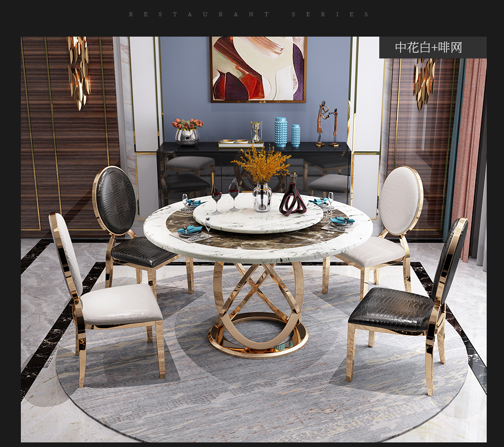 夢美斯宣布テーブルアメリカ式軽量奢ステンレステーブル円形大理石意式テーブルセット現代簡単中大戸型レストラン食事テーブル105 1.2 m円卓【写真価格ブランド見積】-京東