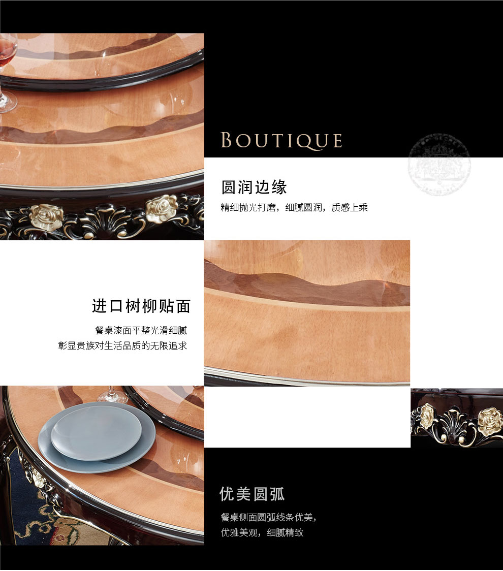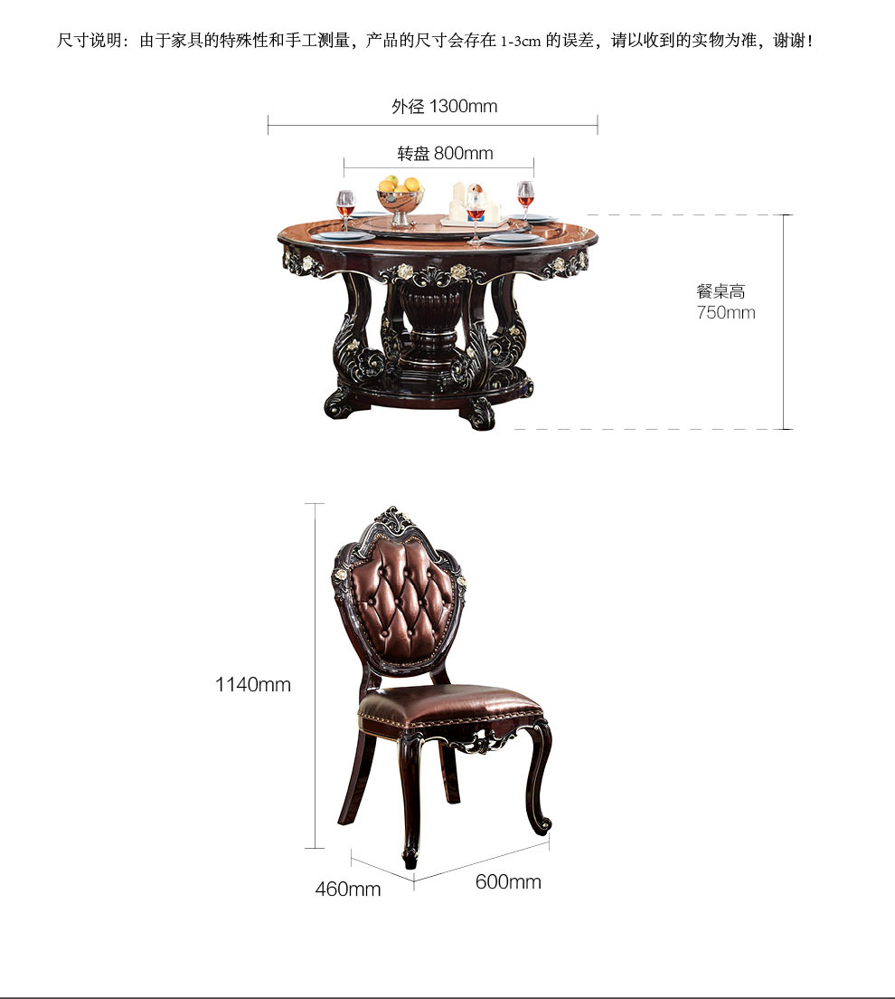 夢美斯宣欧式テーブルアメリカ式丸太テーブルレストランの別荘の古典的な食事テーブルと椅子の組み合わせ手作りの彫刻画金テーブルの椅子333-A一テーブルの六椅子