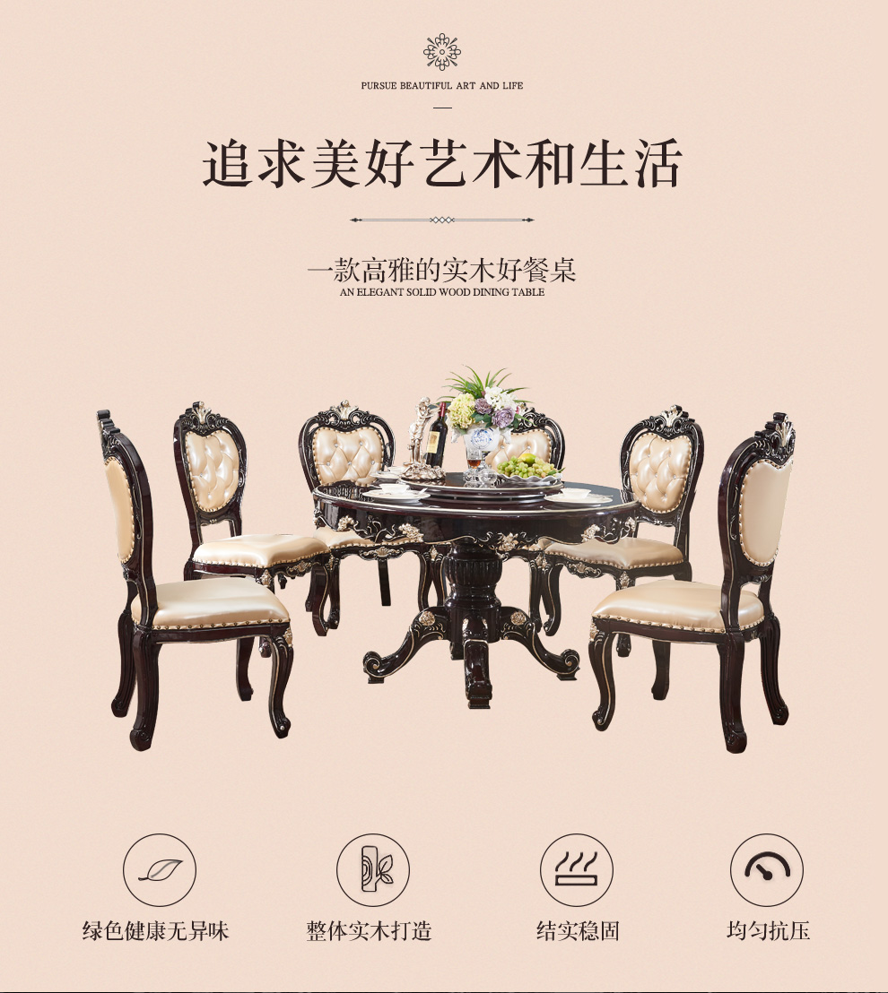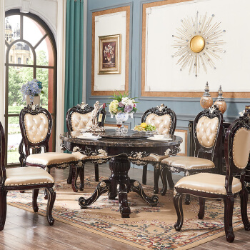 夢美斯宣布テーブル洋式クラシック木描金円形大理石テーブルテーブルとテーブルセットの大戸型レストラン家具テーブル6653 1.35 mテーブル(実木台面)【写真価格ブランド見積】-京東