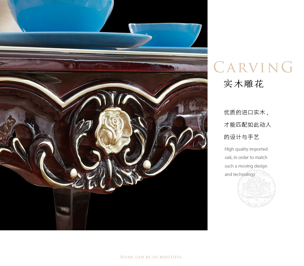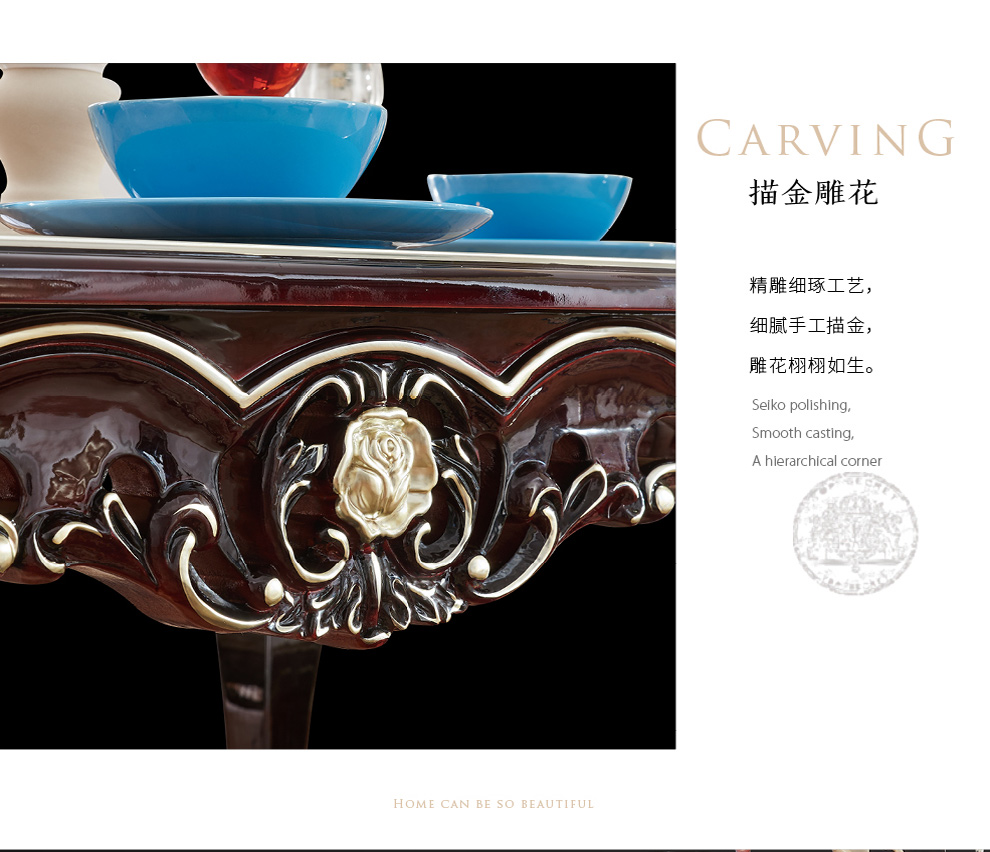 夢の美斯宣の実木の食卓古典ヨーロッパ式の全実木の食事のテーブルと椅子の組み合わせ長方形のテーブルの手作業の彫刻はシャンパンの金388-A 1.5 mテーブルを描写します。