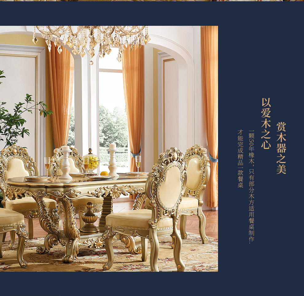 夢美斯宣布テーブル全実木彫刻欧式テーブル大戸型別荘レストラン家具豪華彫刻ライステーブルセット2027長テーブル【写真価格ブランド見積】-京東