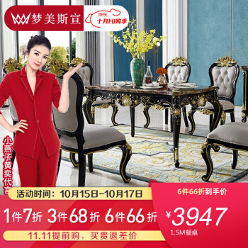 夢美斯宣布テーブル実木テーブルアメリカ式の実木彫刻テーブルとテーブルの洋式新古典大理石テーブルセット611 1.5 Mテーブル【写真価格ブランド見積】-京東