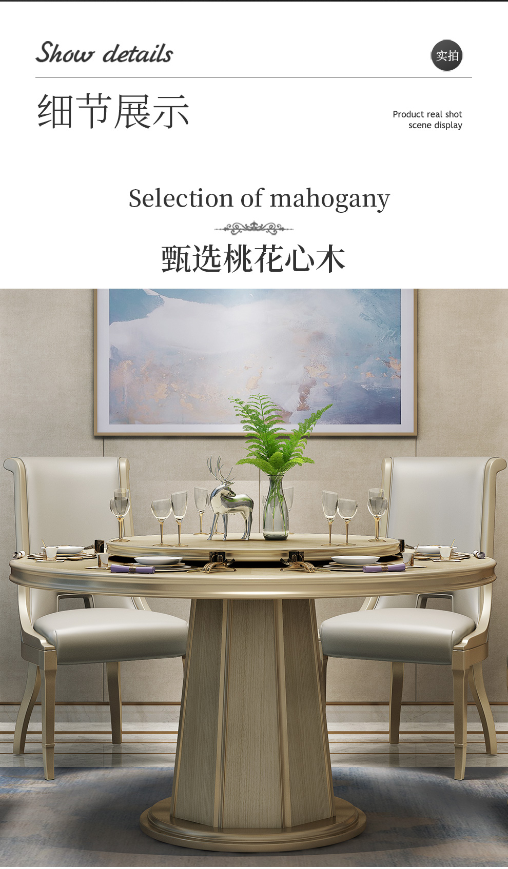 | 商品名称 | 【5折】夢美斯宣食卓軽奢風後現代丸型テーブルベルト回転盤家庭用アメリカ式丸太テーブルセット洋式豪華M 801 1.35 mテーブル |
